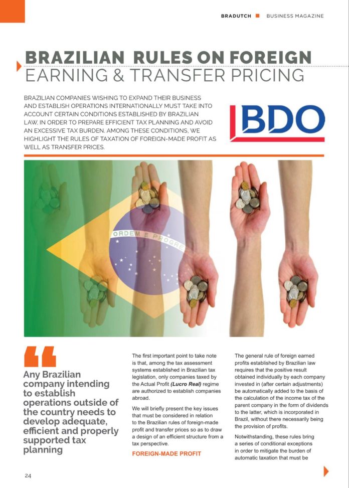 Home Highlights Brazilian rules on foreign earning & transfer pricing Highlightsin BrazilNews Brazilian rules on foreign earning & transfer pricing 15th May 2018 627 0 Facebook Twitter Google+ Pinterest WhatsApp Linkedin Email Article by Niek De Haan and Caio Costa (BDO). READ MORE (EN/PT) >>> Bradutch Business Magazine RELATED ARTICLESMORE FROM AUTHOR in Brazil Brazil: GDP-FGV monitor shows a 0.7% retraction in the economy in October in Brazil Brazil: Central Bank reduces economic growth forecast from 4.7% to 4.4% in 2021 in the Netherlands Netherlands: More bankruptcies in November Members & PartnersMembers & Partners ListAir EuropaBradutch Brazilian Chamber of Commerce in the Netherlands - 23rd January 20200Members & Partners ListGran BeefBradutch Brazilian Chamber of Commerce in the Netherlands - 13th August 20190Members & Partners ListMoneytransBradutch Brazilian Chamber of Commerce in the Netherlands - 24th January 20190Members & Partners ListCorendonBradutch Brazilian Chamber of Commerce in the Netherlands - 16th January 20190Members & Partners ListAKD Benelux LawyersBradutch Brazilian Chamber of Commerce in the Netherlands - 30th November 20180Members & Partners ListOffshore EnergyBradutch Brazilian Chamber of Commerce in the Netherlands - 3rd October 20180Members & Partners ListFenix Gems & MineralsBradutch Brazilian Chamber of Commerce in the Netherlands - 26th August 20180Members & Partners ListGringo LanguagesBradutch Brazilian Chamber of Commerce in the Netherlands - 26th August 20180Members & Partners ListDalosBradutch Brazilian Chamber of Commerce in the Netherlands - 3rd May 20180in the NetherlandsIRO, the Association of Dutch Suppliers in the Upstream Oil and Gas Industry and Offshore Renewable Industry,Bradutch Brazilian Chamber of Commerce in the Netherlands - 20th April 20180Members & Partners ListRede DigitalBradutch Brazilian Chamber of Commerce in the Netherlands - 28th March 20180Members & Partners ListRVO – Netherlands Enterprise AgencyBradutch Brazilian Chamber of Commerce in the Netherlands - 28th March 20180Members & Partners ListFast Forward FreightBradutch Brazilian Chamber of Commerce in the Netherlands - 27th March 20180Members & Partners ListMyon B.VBradutch Brazilian Chamber of Commerce in the Netherlands - 27th March 20180Members & Partners ListDamstéBradutch Brazilian Chamber of Commerce in the Netherlands - 27th March 20180Members & Partners ListBrazil ExpandBradutch Brazilian Chamber of Commerce in the Netherlands - 27th March 20180Members & Partners ListAlbuquerque Pinto AdvogadosBradutch Brazilian Chamber of Commerce in the Netherlands - 27th March 20180Members & Partners ListDefentti & Queiroz AdvogadosBradutch Brazilian Chamber of Commerce in the Netherlands - 27th March 20180Members & Partners ListBDO Accountants & AdvisorsBradutch Brazilian Chamber of Commerce in the Netherlands - 24th January 20180Members & Partners ListRabobankBradutch Brazilian Chamber of Commerce in the Netherlands - 19th October 20170Members & Partners ListNfiaBradutch Brazilian Chamber of Commerce in the Netherlands - 19th October 20170Members & Partners ListPartnersBradutch Brazilian Chamber of Commerce in the Netherlands - 15th April 20160Members & Partners ListMol NotariaatBradutch Brazilian Chamber of Commerce in the Netherlands - 16th February 20160Members & Partners ListRussell AdvocatenBradutch Brazilian Chamber of Commerce in the Netherlands - 24th November 20150Members & Partners ListDO BRASIL GroupBradutch Brazilian Chamber of Commerce in the Netherlands - 17th November 20150 REGISTER