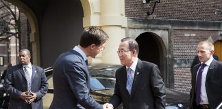Mr Ban Ki-Moon, Prime Minister Rutte, and Minister Van Nieuwenhuizen kick...