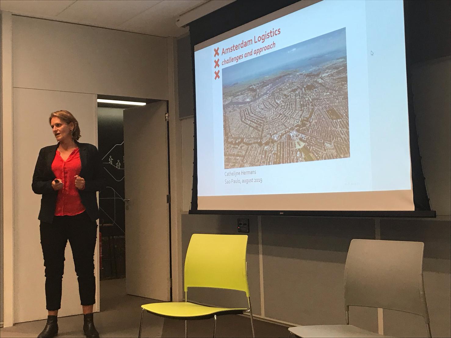 The crucial role of last mile logistics in sustainable urban development were the core of Cathelijne Hermans’s visit to São Paulo. As Program Manager of City Logistics for the municipality Gemeente Amsterdam, Cathelijne shared the challenges that Amsterdam is facing with the increase of deliveries in the urban area, and the need to reduce emissions and keep the city center liveable.