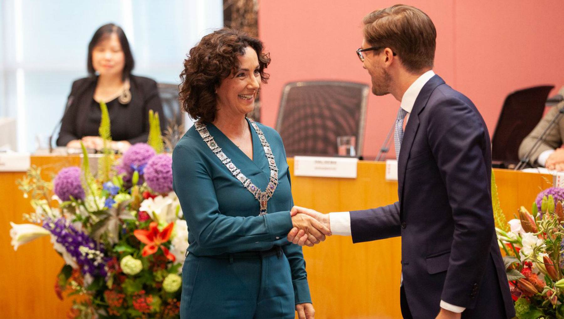 Femke Halsema foi empossada como nova prefeita de Amsterdã em uma cerimônia na Câmara do Conselho na Câmara Municipal de Amsterdã na quinta-feira, 12 de julho de 2018. Em seu discurso inaugural, a nova prefeita se comprometeu a lidar com os crescentes desafios da cidade mantendo seu senso de liberdade.