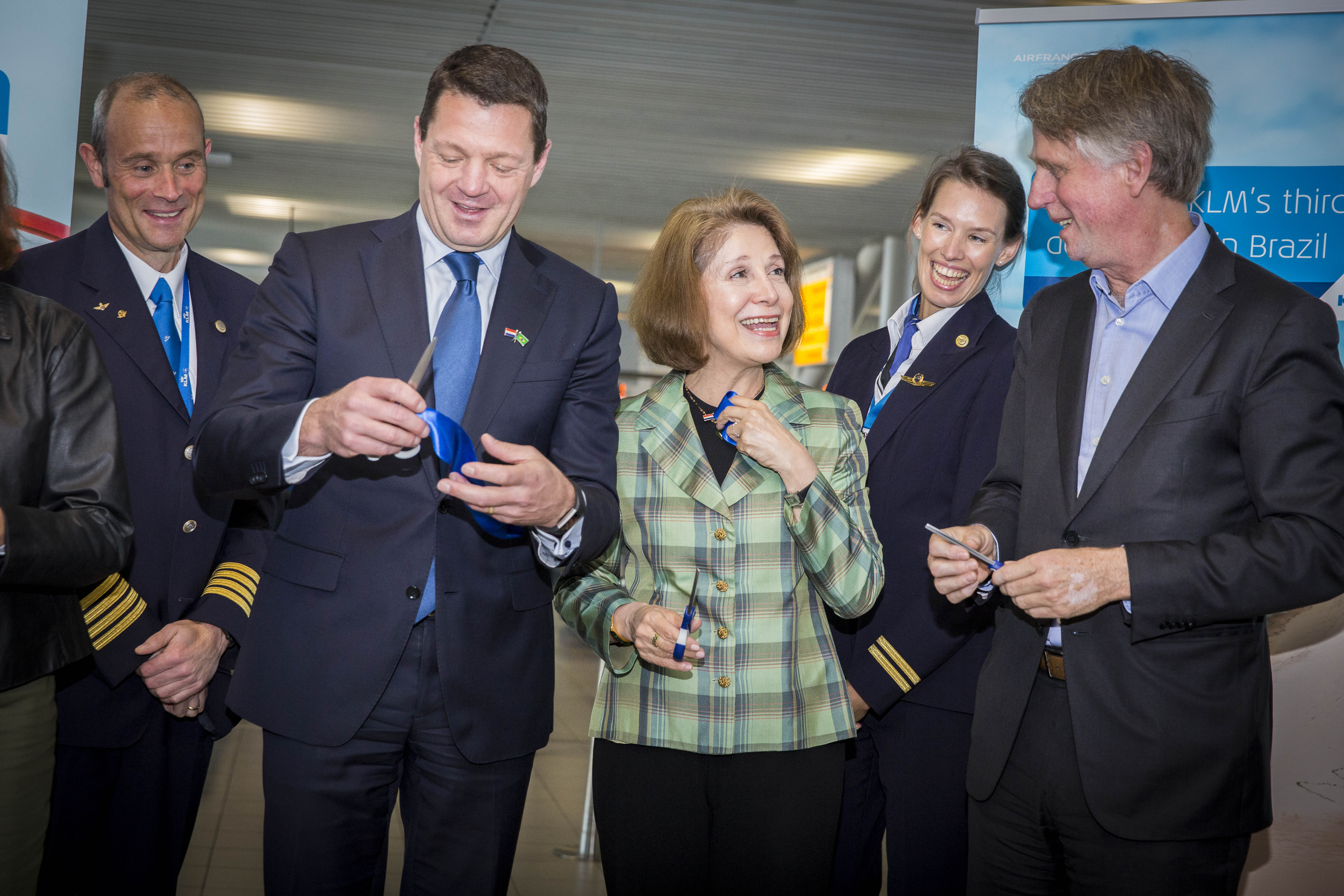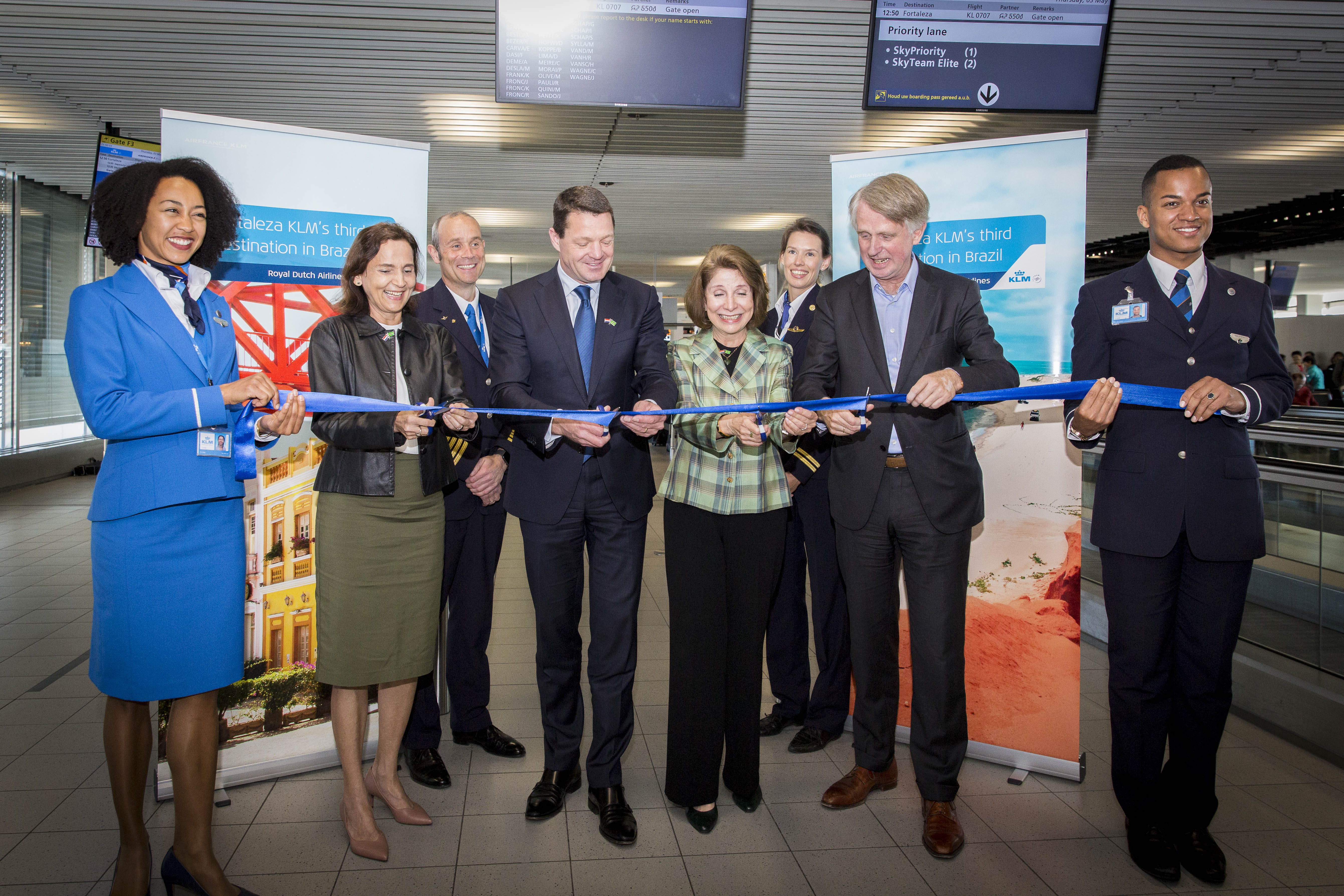 A brief opening ceremony took place at the departure gate at Schiphol, attended amongst others by the Brazilian Ambassador to the Netherlands, Regina Cordeiro Dunlop, Vice Governor of Ceara state, Maria Izolda Cela de Arruda Coelho, and Schiphol CEO, Dick Benschop.