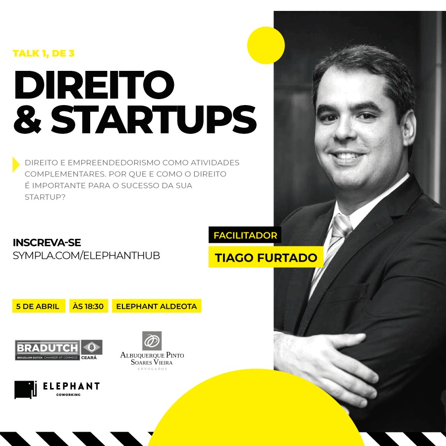 Tiago Furtado, a partner at Albuquerque Pinto Advogados in Fortaleza and a representative of Bradutch in Ceará, participates as facilitator of the event “Law & Startups: Why and how is law important for the success of your startup?”. The event will take on April 5th in Fortaleza.